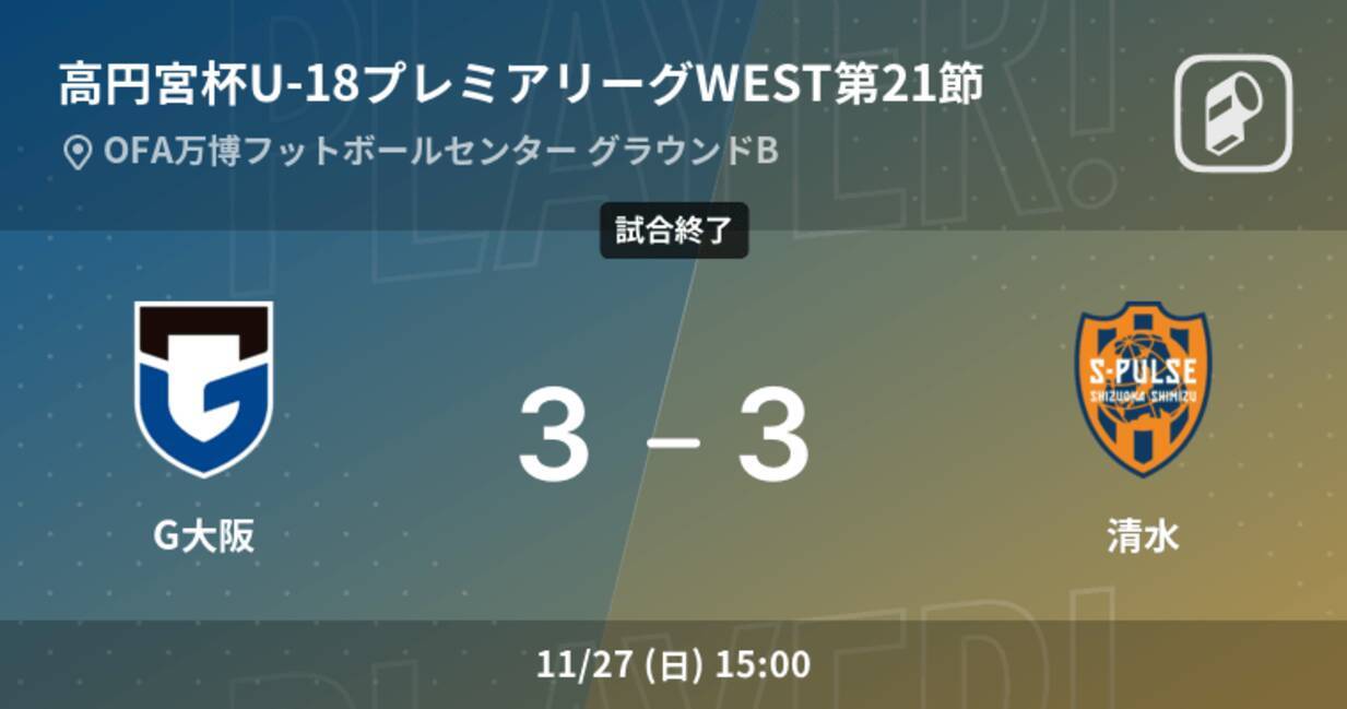 高円宮杯u 18プレミアリーグwest第21節 G大阪は清水に追い付くも 引き分け 22年11月27日 エキサイトニュース